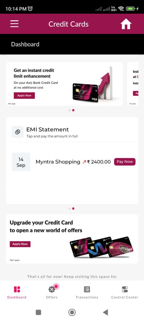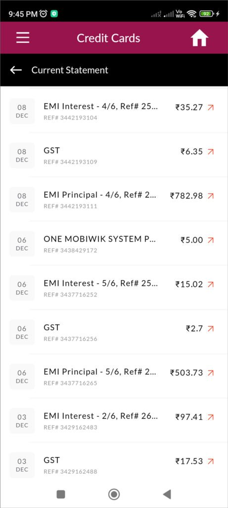 • No list of converted EMIs with details (dates, remaining EMIs, Interest etc.)